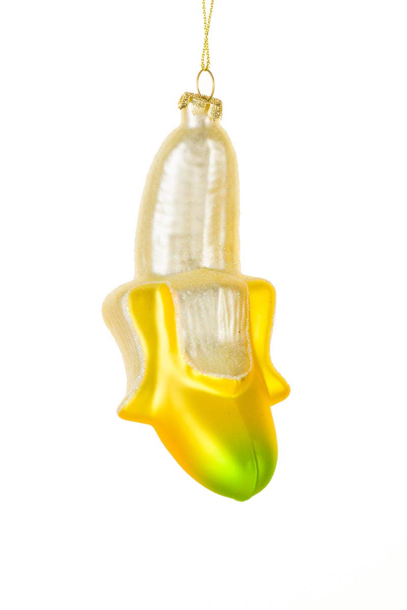 • SKU: DK5579 • Description: 4.88" Glittery Hanging Yellow and White Glass Peeled Banana Ornament • IMPORTED • Product Dimensions: 4.88 x 4.88 x 2.25 Inches; 0.08 lbs Your Family's Tree should reflect the things that you value. And while that may often be something with a deeper, more profound meaning, it's perfectly fine to wear your heart on your sleeve and boldly show your love for this tasty treat. Charming and original, we know you'll love adding this Hanging Glittery Peeled Banana Ornament from our Food & Drink collection to yours. With its bright, warm Yellow and White shine, it's perfect for adding a fun touch. Hand-crafted in the classic German tradition, this gentle Glass Ornament is as classic Christmas Tree decor as you're likely to find to put up on your tree year after year.