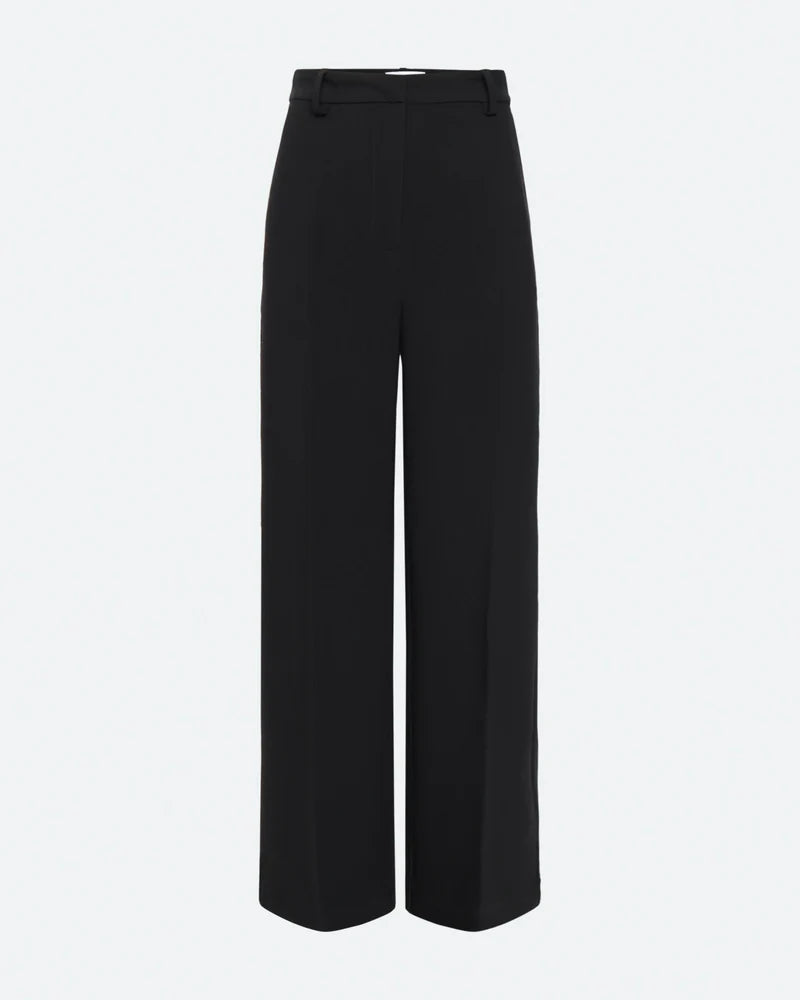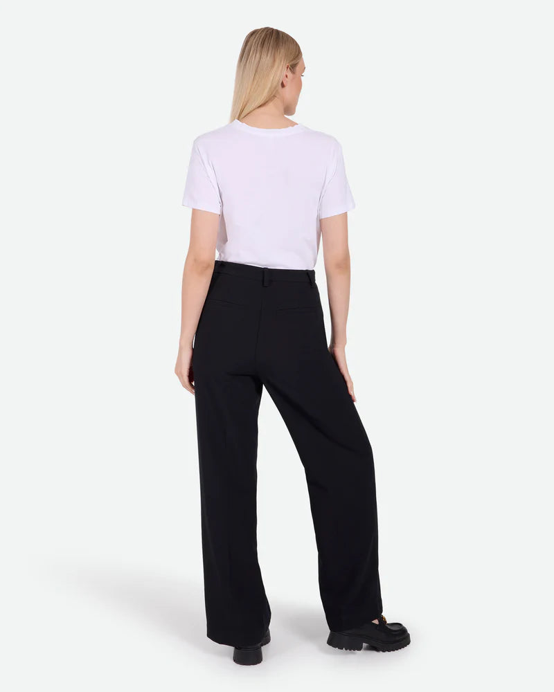 Libra is a pair of classic pants crafted from 79% recycled polyester, 17% viscose and 4% elastane. The pants have a regular waist, a simple wide fit with two slanted side pockets and two welt pockets at back.