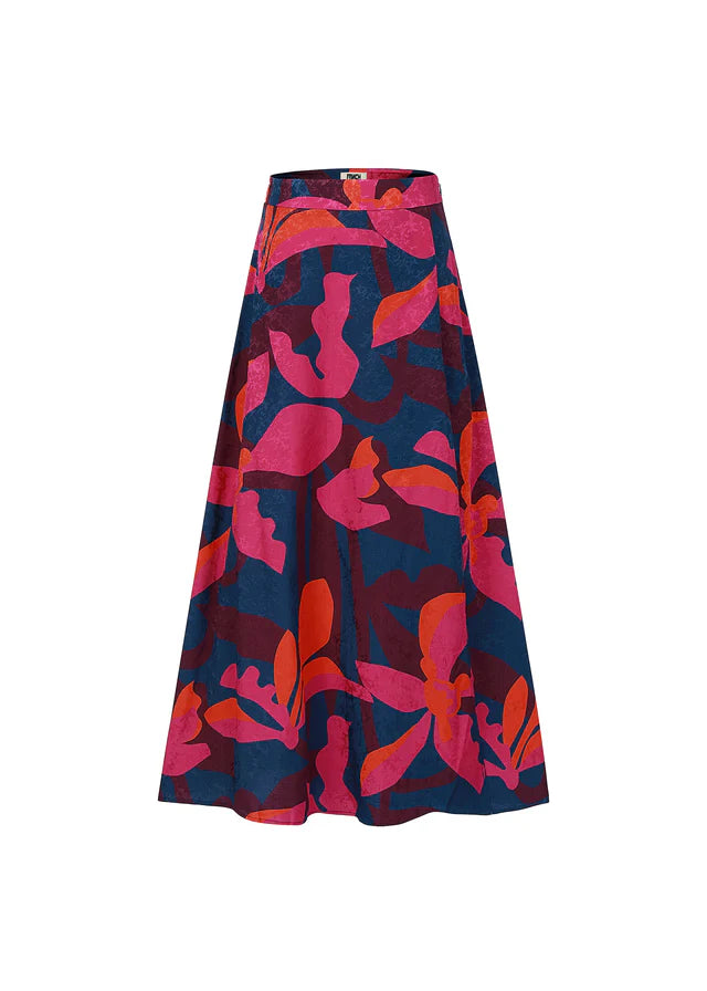 This Burmese Skirt features an exclusive FRNCH floral print on lightweight, 100% viscose fabric, ensuring comfortable wear and graceful movement. Its long flowing design adds elegance and versatility, perfect for both casual and dressy occasions. Crafted with expert attention to detail, this skirt combines style and comfort effortlessly.