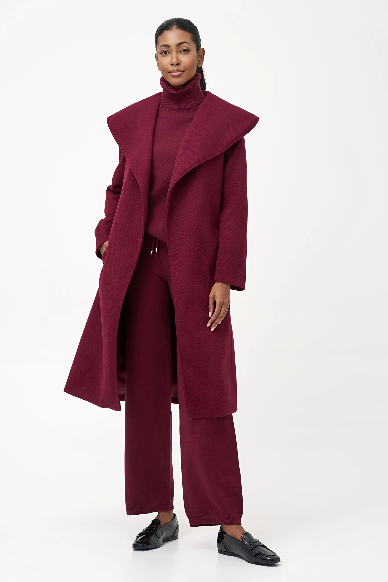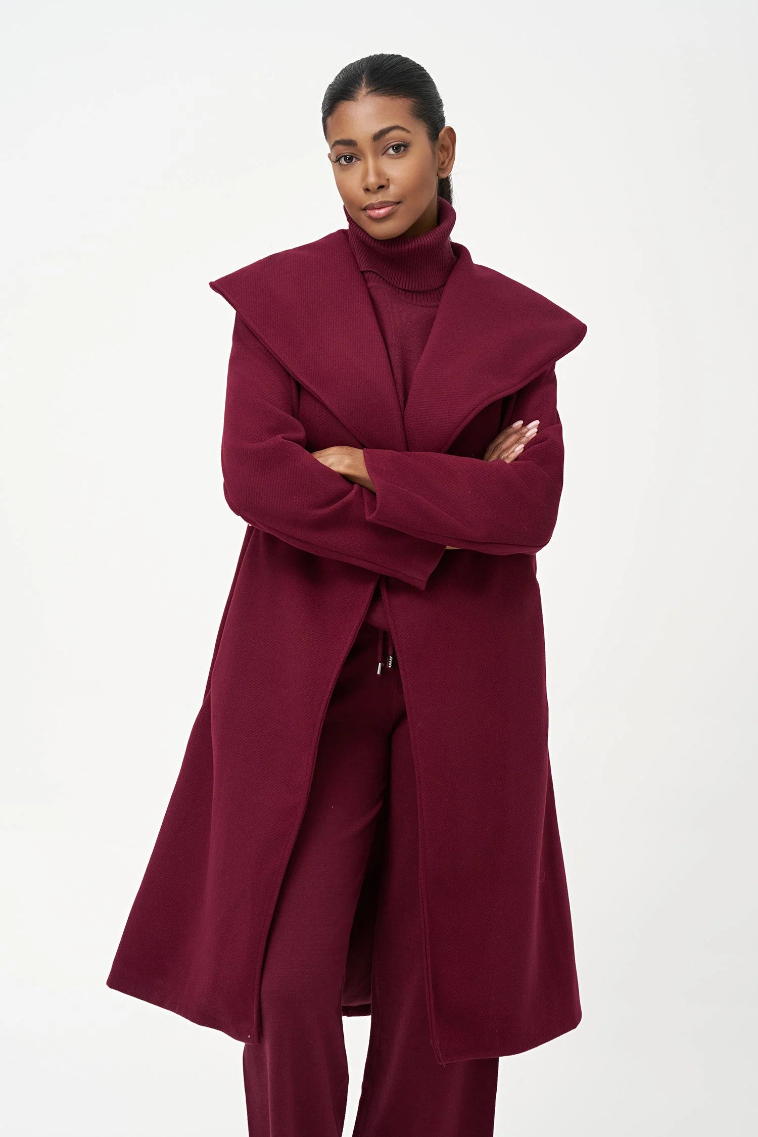 Introducing the Carmen Coat, the ultimate in elegance and sophistication. With its oversized collar and classy design, this coat is a must-have for those who appreciate luxury and style. Perfect for any occasion, step out in style with the wine coloured Carmen Coat.