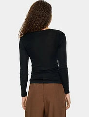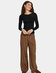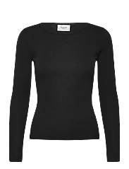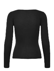 This long-sleeved blouse is made from a blend of wool and polyester. It has a slim fit and a round neckline. The blouse is perfect for layering or wearing on its own.
