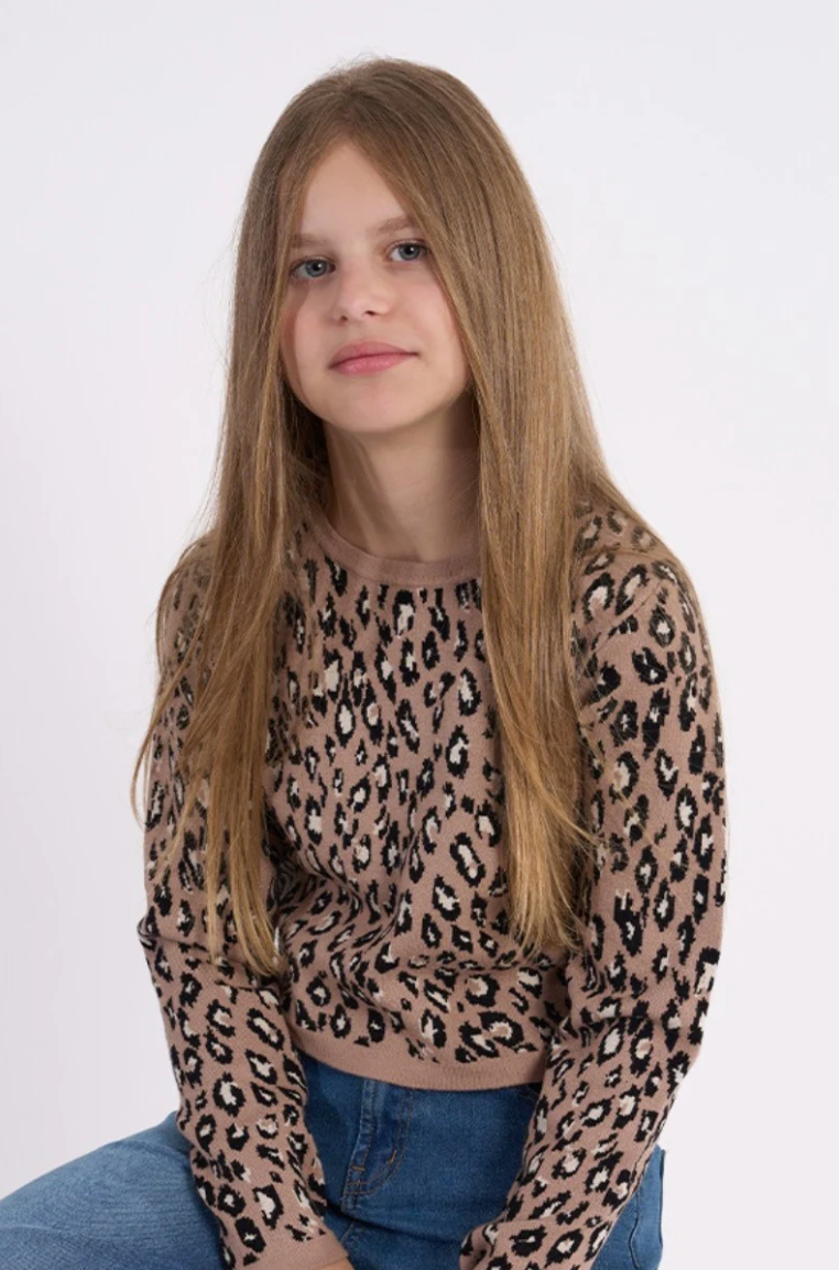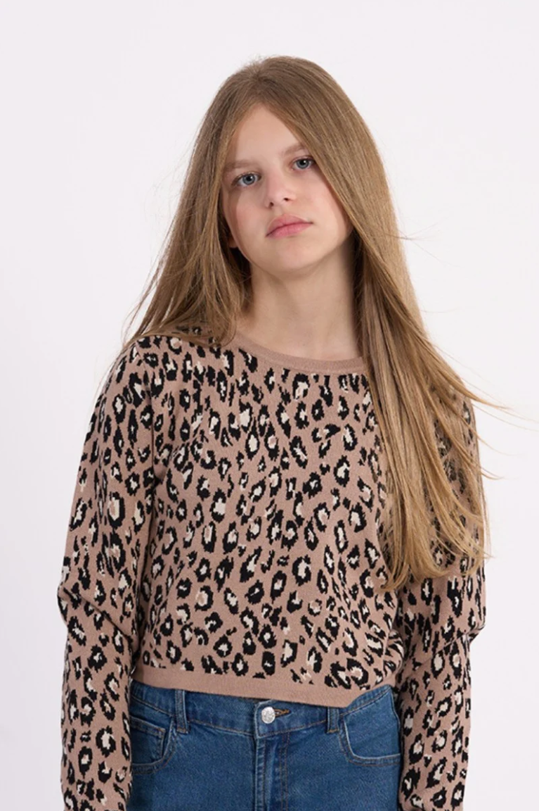Rock that wild side with this adorable leopard print knit sweater! Designed with a fun cropped silhouette and straight cut, it's perfect for mixing and matching with your favorite bottoms. Long sleeves and a cozy round neckline make it ideal for layering through the seasons. At just 15.4 inches from shoulder to hem in size 12Y, this playful piece delivers major style without the fuss.