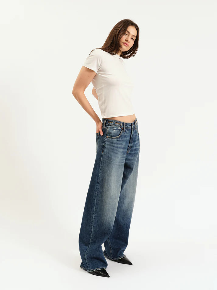 The Highland in Authentic is an adjustable extreme baggy in the perfect dark indigo wash. Wear this style buttoned up for a cinched waist fit, or wear unbuttoned for a laid-back lower rise look.