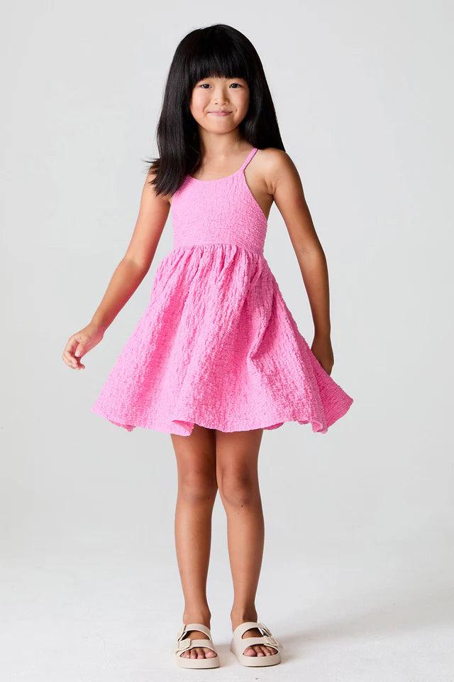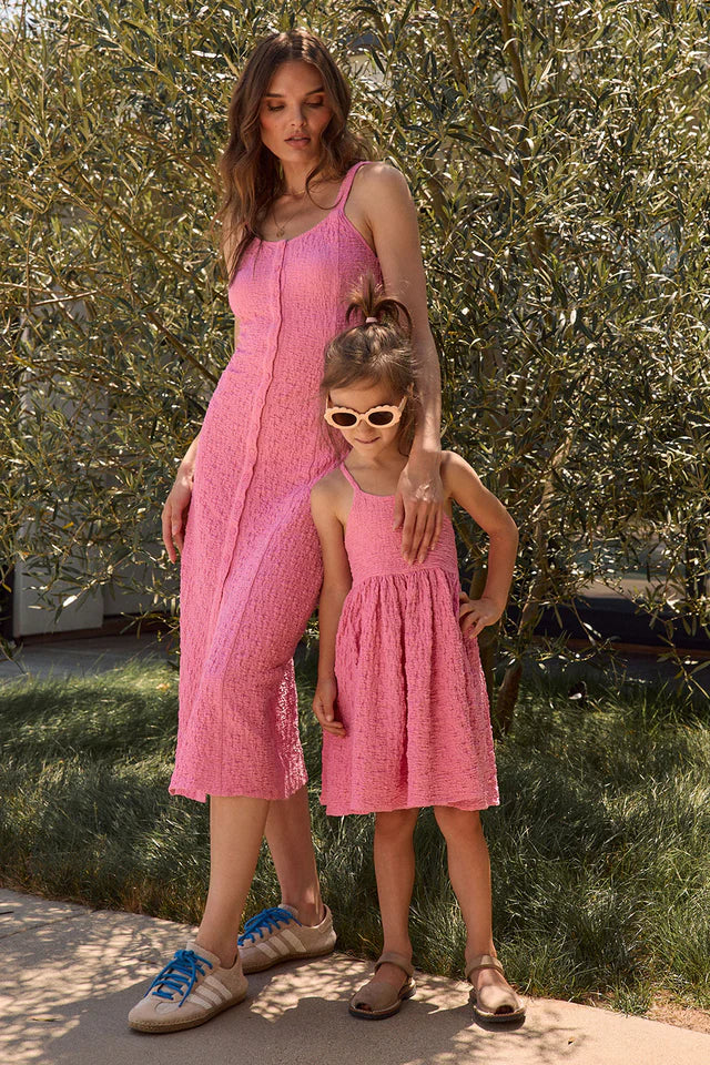 Celebrate coordinated style with this charming mini dress in romantic Dahlia Pink by Saltwater Lux. The thoughtfully blended fabric—50% cotton, 40% nylon, and 10% spandex—delivers breathability, durability, and subtle stretch for effortless movement.