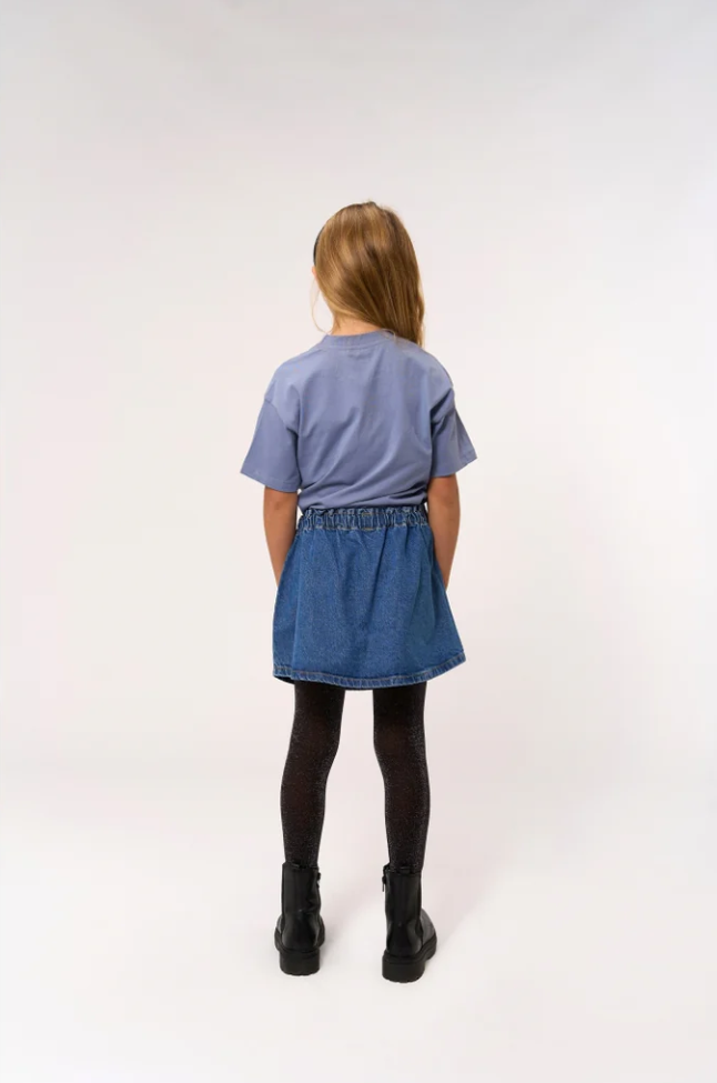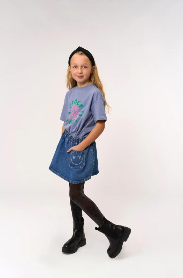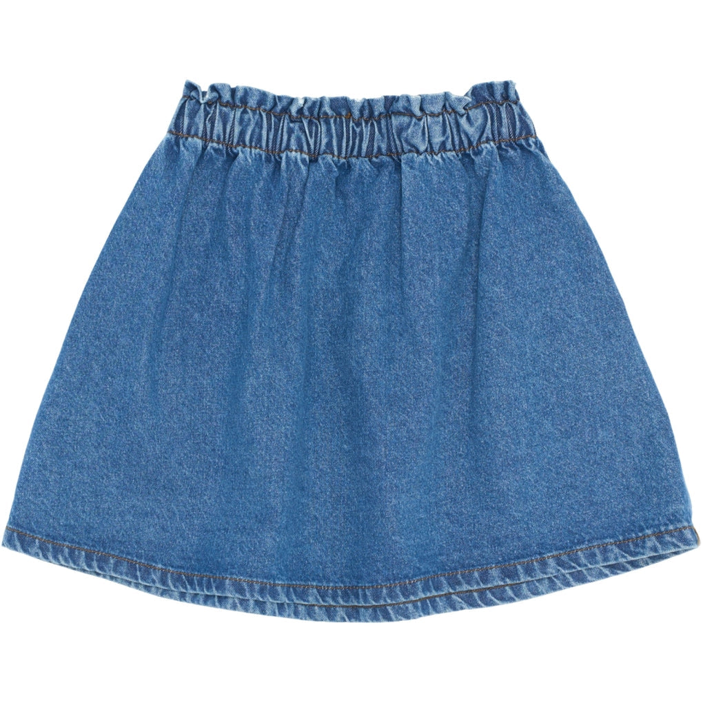 This denim skirt from THE NEW siblings is both cute and comfortable. The skirt features an elastic waistband, ensuring a comfortable fit and making it easy to put on and take off. It is designed with a small front pocket decorated with a smiling face, adding a fun and playful touch. The durable denim quality makes it suitable for both play and everyday wear. Perfect to style with a T-shirt or sweatshirt for a casual look.