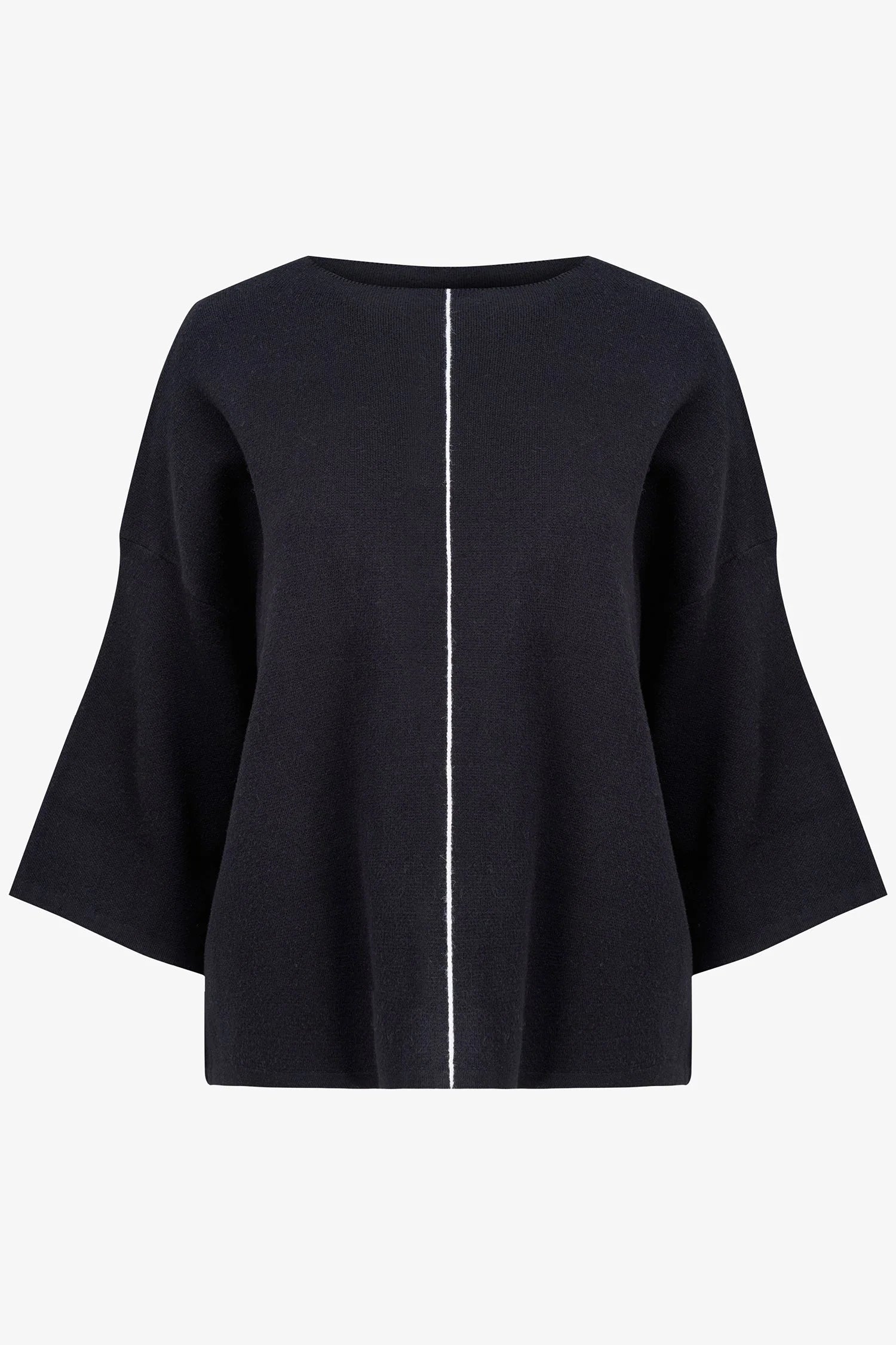 The White Line Sweater is the epitome of elegance and sophistication. Crafted from ultra soft black fabric, this 3/4 length sleeve sweater features a solitary white line of piping down the front, adding a touch of luxury to any ensemble. Experience comfort and style with this premium piece by M Made in Italy.